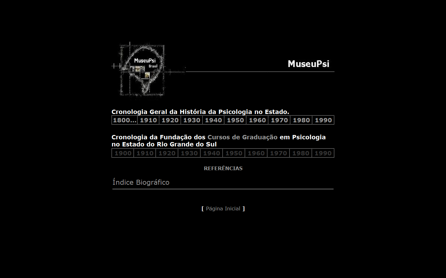 No Museu Virtual de Psicologia, podemos encontrar vários documentos históricos relacionados à Psicologia brasileira. Principalmente, fontes referentes ao Estado do Rio Grande do Sul. Por exemplo, há um quadro cronológico da psicologia no Estado.