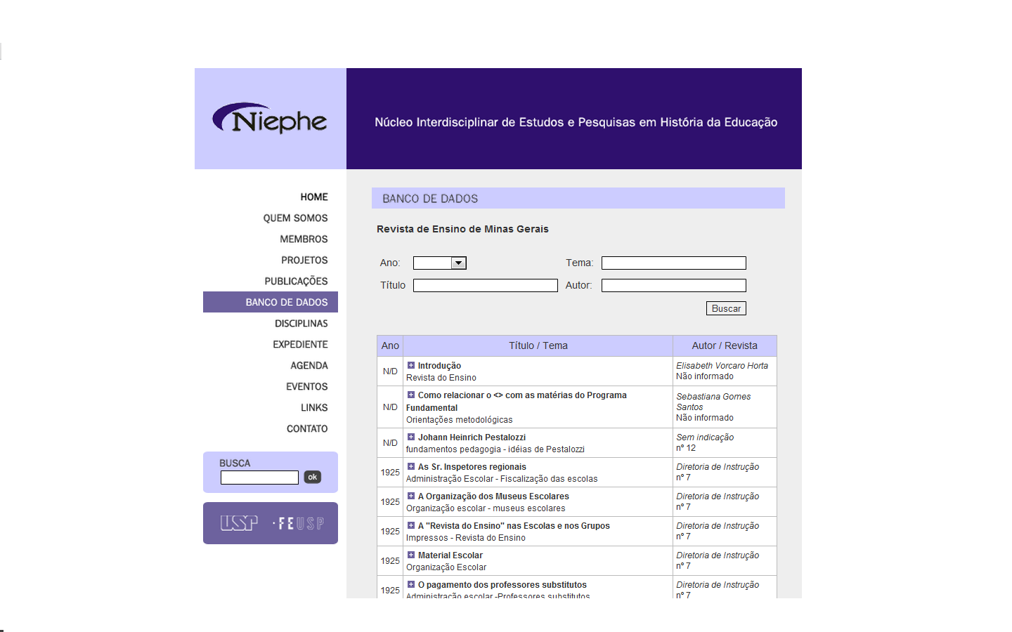 No Núcleo Interdisciplinar de Estudos e Pesquisas em História da Educação, podemos encontrar um banco de dados de jornais, publicações do Núcleo, dentre outros.