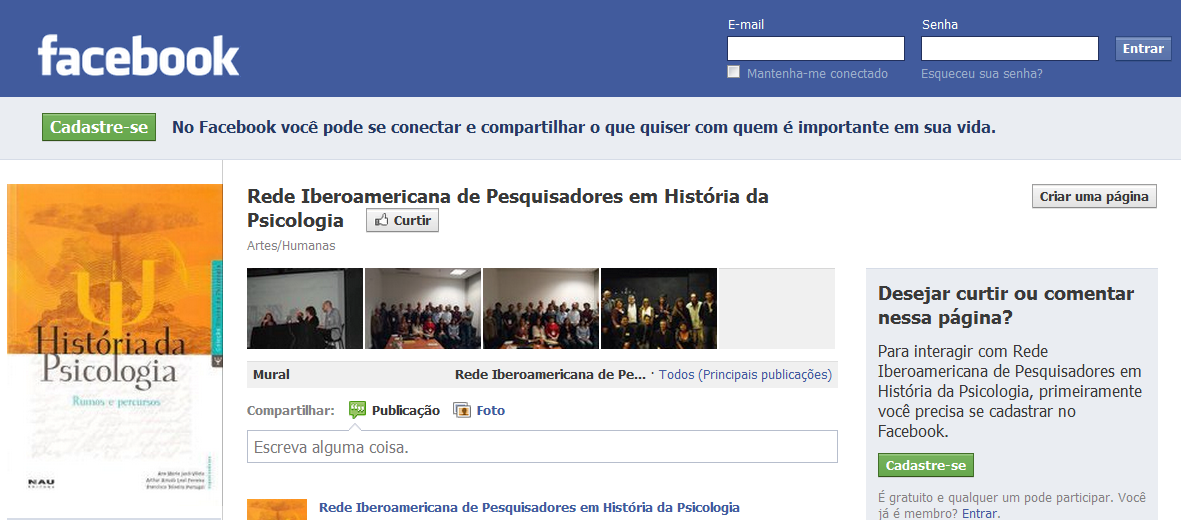 Podemos acessar a página do Blog no Facebook pela própria rede social. Para isso, é necessário um perfil nessa rede. No campo de busca do Facebook, deverá procurar por Rede Iberoamericana de Pesquisadores em História da Psicologia (RIPeHP).