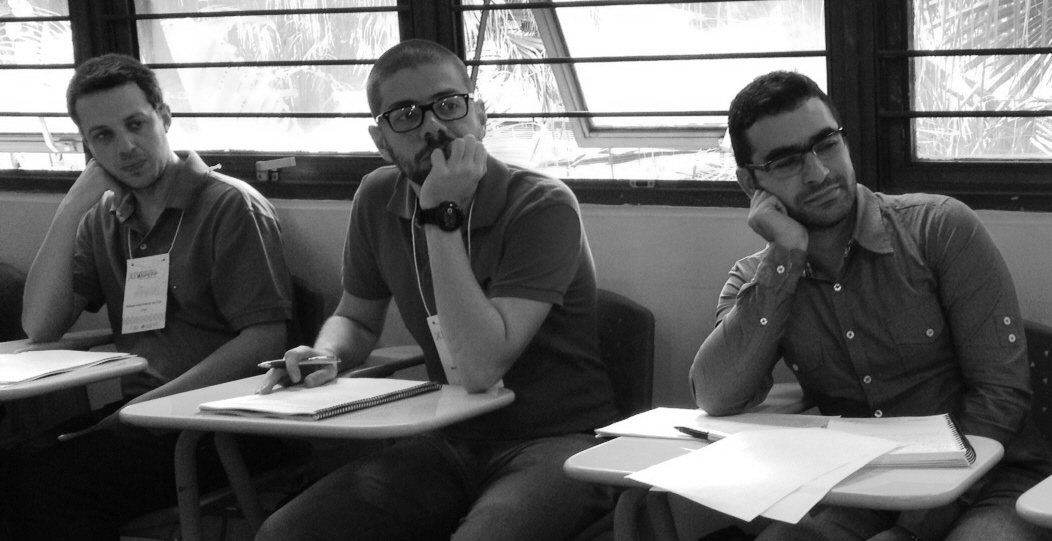 Entre os apresentadores a maioria era de professores de programas de pós graduação. Contudo, esse ano o GT também contou com intensa participação de doutorandos e de recém doutores. Na foto abaixo três dos doutorandos da UFMG presentes, Robson Cruz, Rodrigo Miranda e Eustáquio de Souza Júnior.