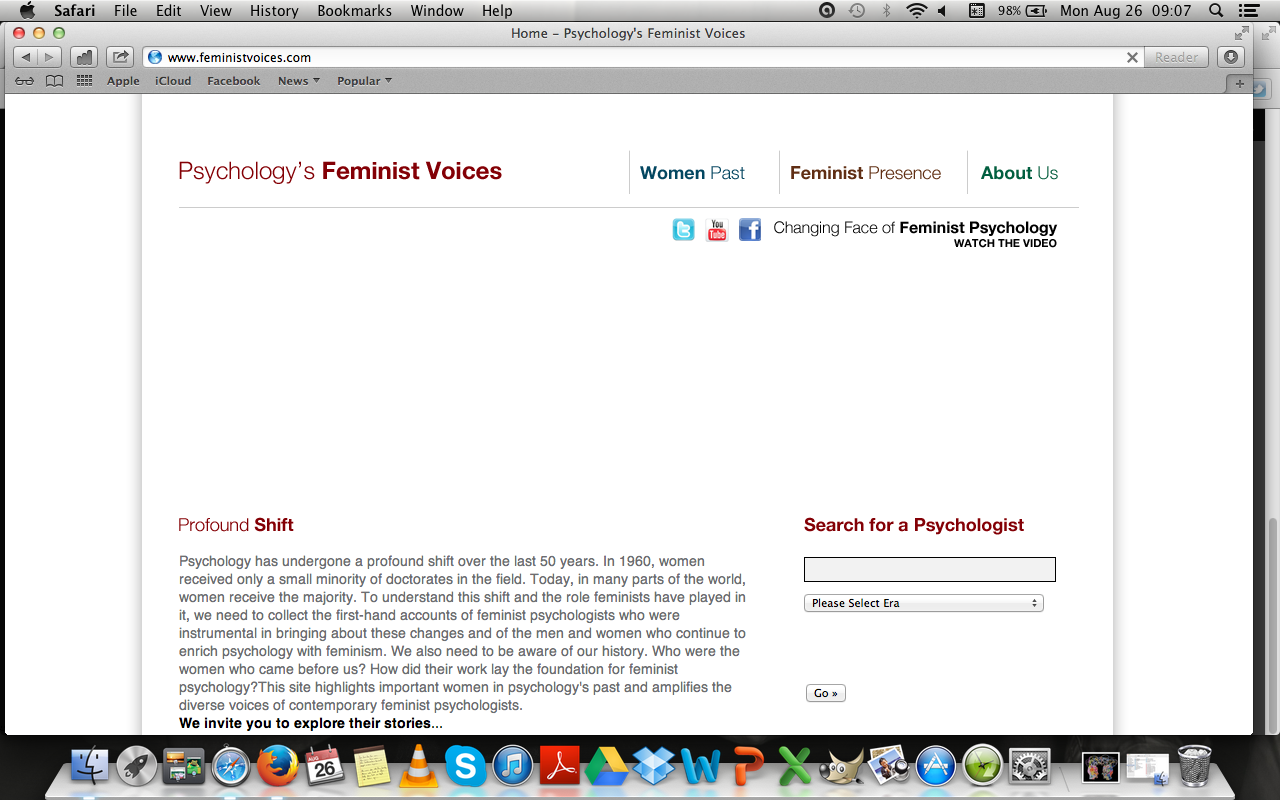 Other efforts at disseminating HoP have by passed blogs altogether, employing Facebook and Twitter as their primary means of communication. These include the Society for the History of Psychology (Division 26 of the American Psychological Association), which communicates primarily through its Facebook page, and Psychology’s Feminist Voices, a multi-media internet archive, which has both a Facebook and Twitter presence.