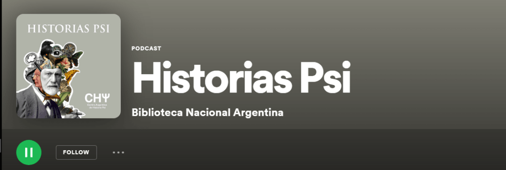 Como una forma de mantener la comunicación con su público durante estos difíciles tiempos y también para ampliar su radio de acción, el Centro Argentino de Historia del Psicoanálisis, la Psicología y la Psiquiatría ha empezado a publicar una serie de podcast, alojados en la cuenta oficial de Spotify de la Biblioteca Nacional Mariano Moreno.