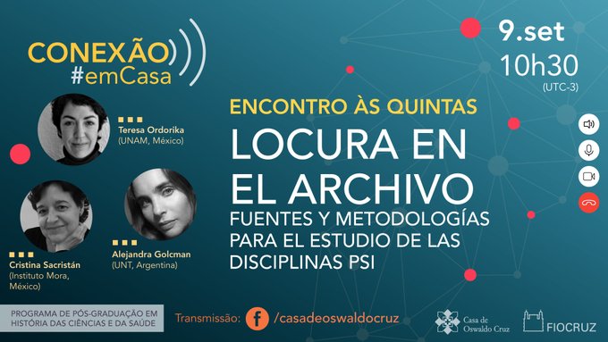 O encontro foi dedicado ao lançamento do livro “Locura en el archivo: fuentes y metodologías para el estudio de las disicplinas psi” e contou com a participação de Teresa Ordorika (Universidade Nacional Autônoma do México), Alejandra Golcman (Universidade Nacional de Tucumán, Argentina) e Cristina Sacristán (Instituto Mora, México), apresentando a obra que conta, ainda, com a colaboração de autores argentinos, brasileiros e mexicanos.