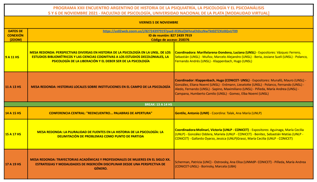 El próximo viernes 5 y sábado 6 de noviembre se realizará la vigesimosegunda versión de uno de los más relevantes espacios de encuentro de investigadores de la historia psi en Latinoamérica, organizado este año por colegas de la Universidad Nacional de La Plata.