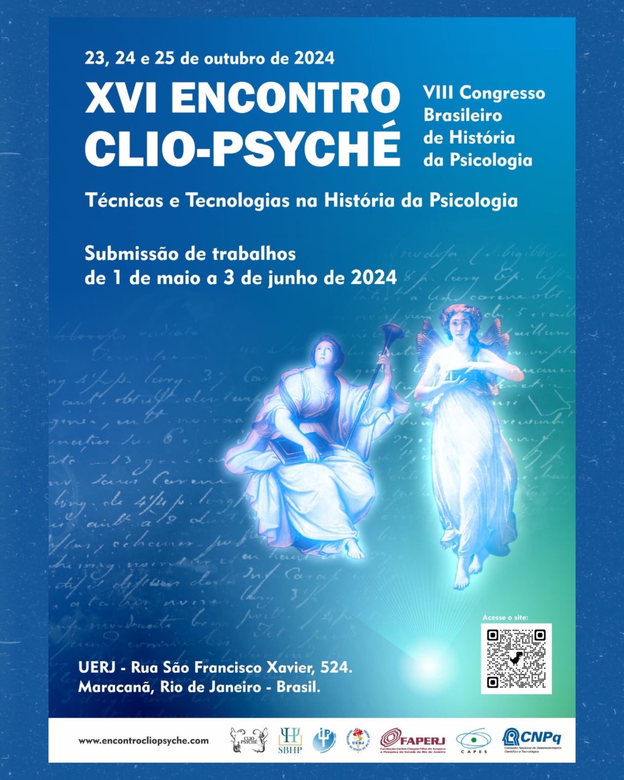 Nos dias 23, 24 e 25 de outubro de 2024, a Universidade Estadual do Rio de Janeiro (UERJ) sediará o XVI Encontro Clio-Psyché em edição conjunta com o VIII Congresso Brasileiro de História da Psicologia. O evento terá como tema “História da Psicologia: técnicas e tecnologias” e é promovido pelo Programa de Estudos e Pesquisa em História da Psicologia Clio-Psyché em parceria com a Sociedade Brasileira de História da Psicologia.